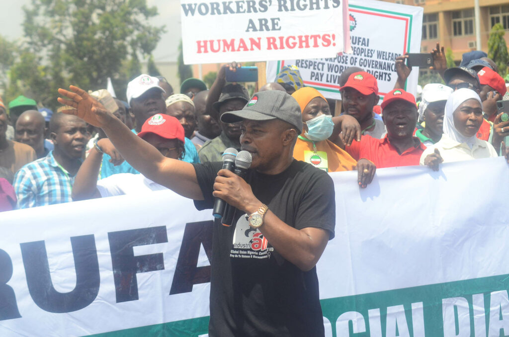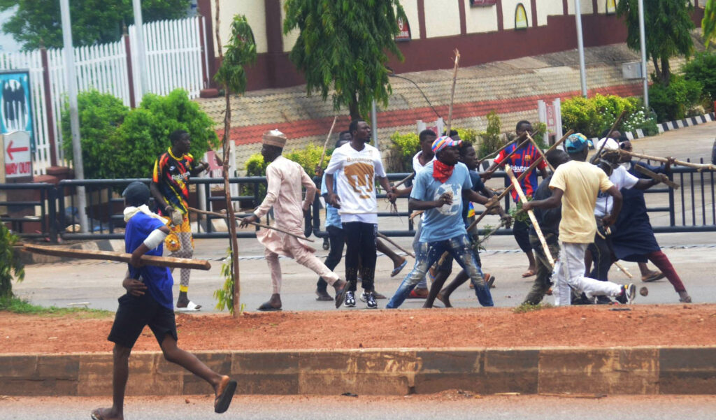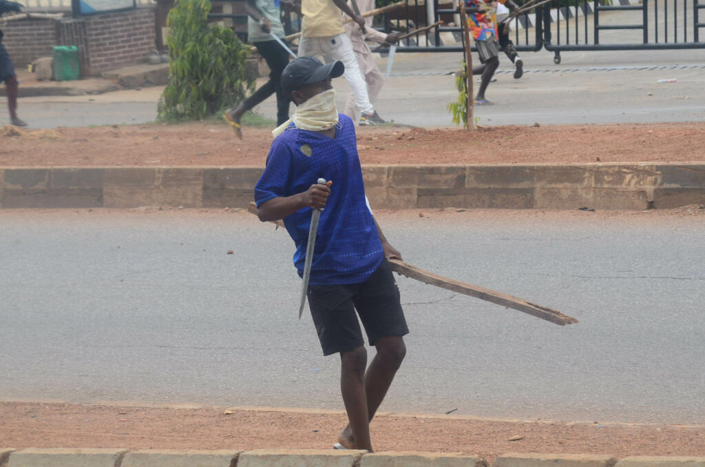 Nigeria Labor Congress (NLC) during the second day of their protest which was disrupted by armed thugs at NEPA Round About on Ahmadu Bello Way on Tuesday (18/5/21). Ibrahim Bashir/BJO/NAN A lone-ranger armed thug on rampage as thugs attack Nigeria Labor Congress (NLC) protesters in Kaduna disrupting their procession, at NEPA Round About on Ahmadu Bello Way on Tuesday (18/5/21). Ibrahim Bashir Armed thugs on rampage as they attack Nigeria Labor Congress (NLC) protesters in Kaduna disrupting their procession, at NEPA Round About on Ahmadu Bello Way on Tuesday (18/5/21). Ibrahim Bashir/BJO/NAN Armed thugs on rampage as they attack Nigeria Labor Congress (NLC) protesters in Kaduna disrupting their procession, at NEPA Round About on Ahmadu Bello Way on Tuesday (18/5/21). Ibrahim Bashir/BJO/NAN Armed thugs come face-to-face with security men as they attack Nigeria Labor Congress (NLC) protesters in Kaduna disrupting their procession, at NEPA Round About on Ahmadu Bello Way on Tuesday (18/5/21).